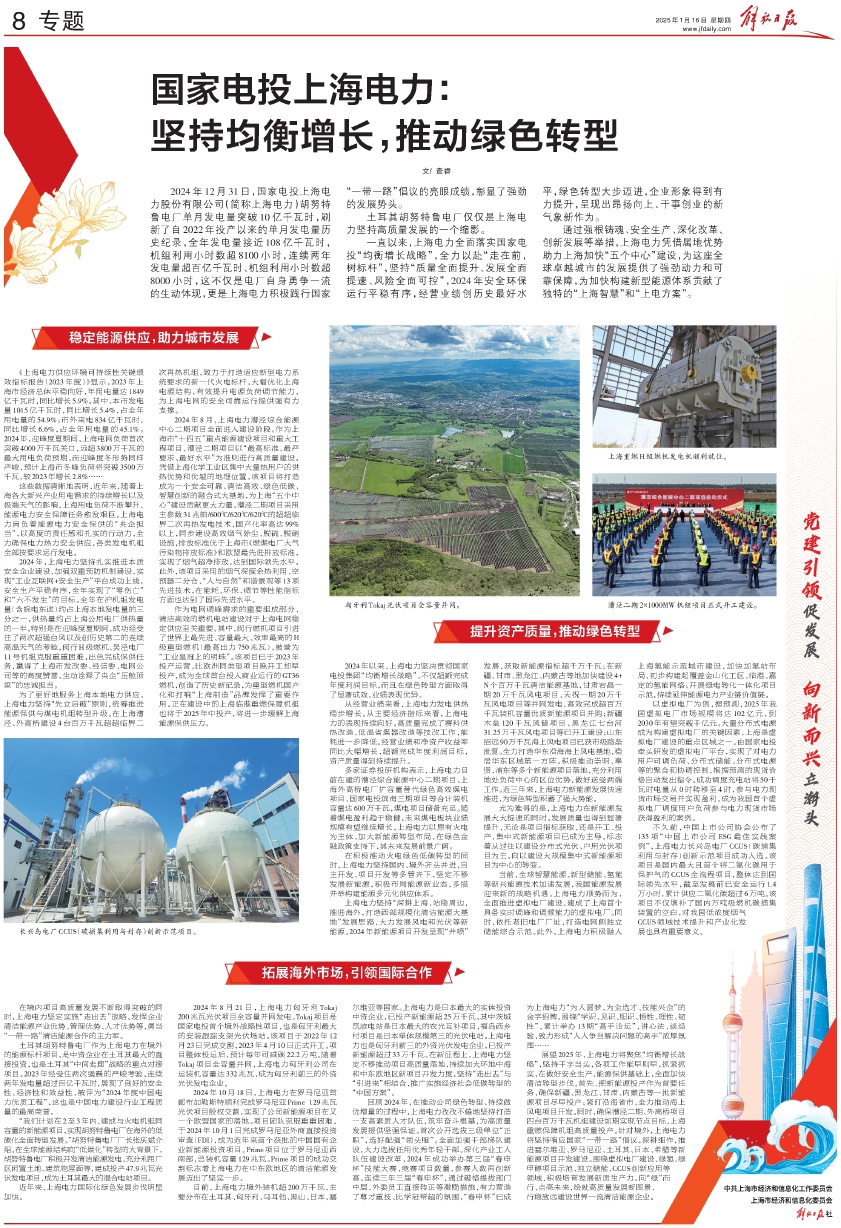 2024年以来,上海电力坚决贯彻国家电投集团“均衡增长战略”,不仅超额完成年度利润目标,而且在绿色转型方面取得了显著成效,业绩表现优异。