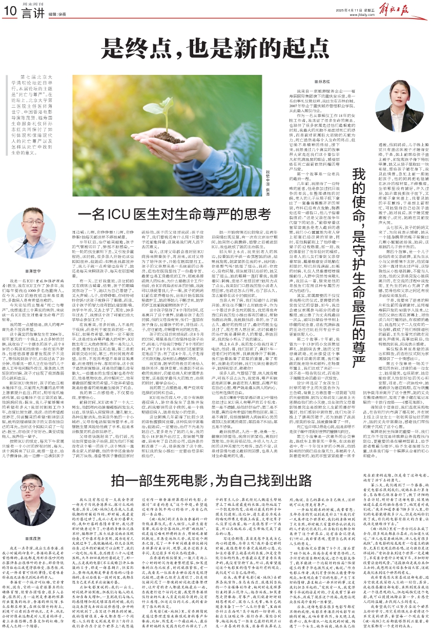 我觉得,医学的终极目的是给人提供关怀、提供安慰。当遇到不可治愈的疾病时,仍能给病人和家属带去安慰,这是医学最伟大的地方。治病的同时,要学会治心。