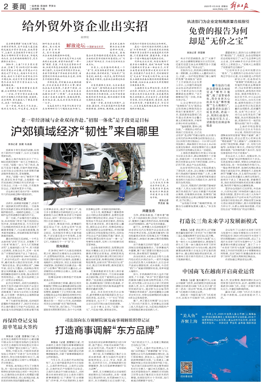 更多份合规指引已在研制。韦浩表示,行政执法部门将持续深化重点企业服务包制度,更多针对上海三大先导产业、战略性新兴产业和未来产业的定制合规指引将陆续出炉,帮助经营主体强化违法风险防控意识,提升内部管理能力和水平,从源头消除违法隐患,切实回应企业“可感可及”的迫切需求。