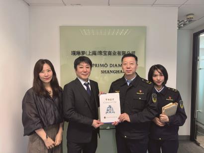 静安区市场监管局向璞琳梦(上海)珠宝商业有限公司赠送“锦囊”。 -