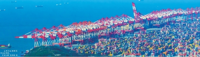 上海洋山港繁忙作业的景象。本报记者 张海峰 摄