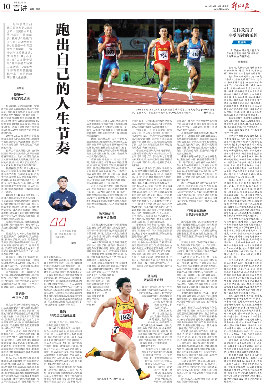 果然,从那以后,我再也没有体会过那种感觉。现在,当我面对田径队那些特别热爱田径的孩子时,我会告诉他们:“当你们比赛时,千万不要想着金牌,千万不要想着创造个人最好成绩。只要你能够跑出自己的节奏,那就是最好的。如果你能做到这一点,那么这场比赛就是你自己的‘奥运会’。”