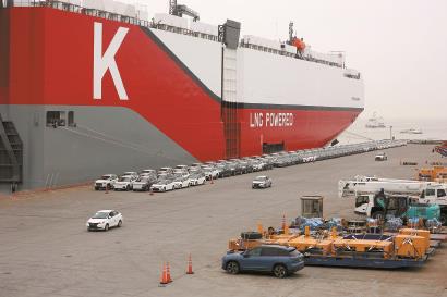中国制造的新能源汽车从外高桥海通汽车码头走向世界各地。 本报记者 李茂君 摄