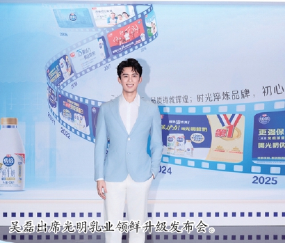 吴磊出席光明乳业领鲜升级发布会。 -