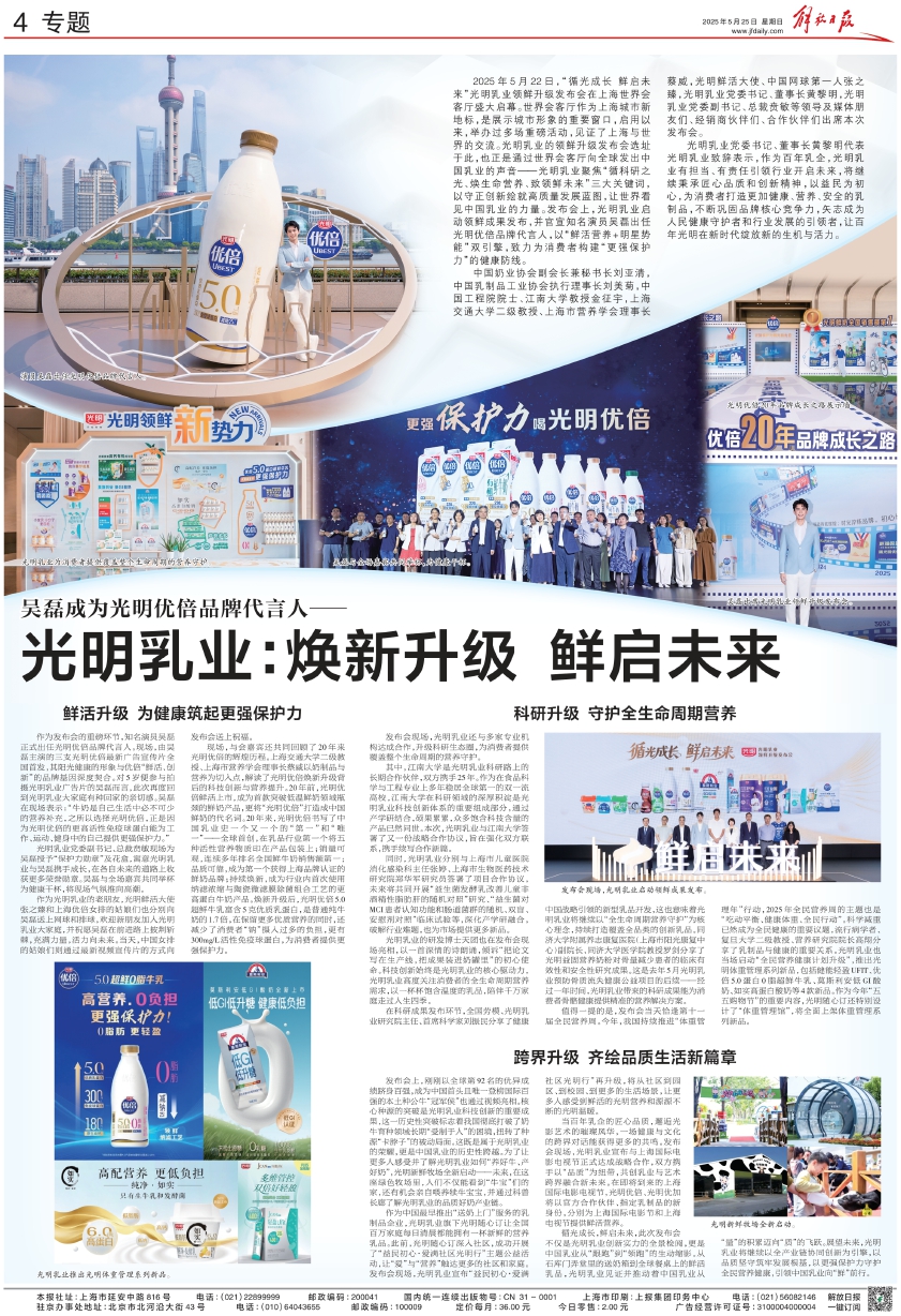 演员吴磊出任光明优倍品牌代言人。 -