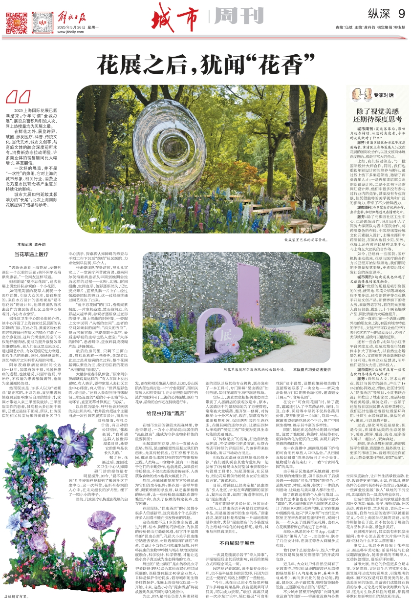 目前,几家医疗机构受到花展的启发,正在和相关策展人接洽。比如,香山医院内部也将打造一个“疗愈花园”。而相关策展人和有关部门,正计划把医院的中药渣作为肥料用于上海的公共绿地。医疗与花草,后续的合作还在持续进行中。