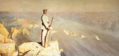 也是在那一年,陈逸飞又创作了反映解放战争题材的组画《红旗》,其中一幅作品描绘的是几位即将冲锋陷阵的战士面对死亡的瞬间,朴实、深沉的表情,令人感动。