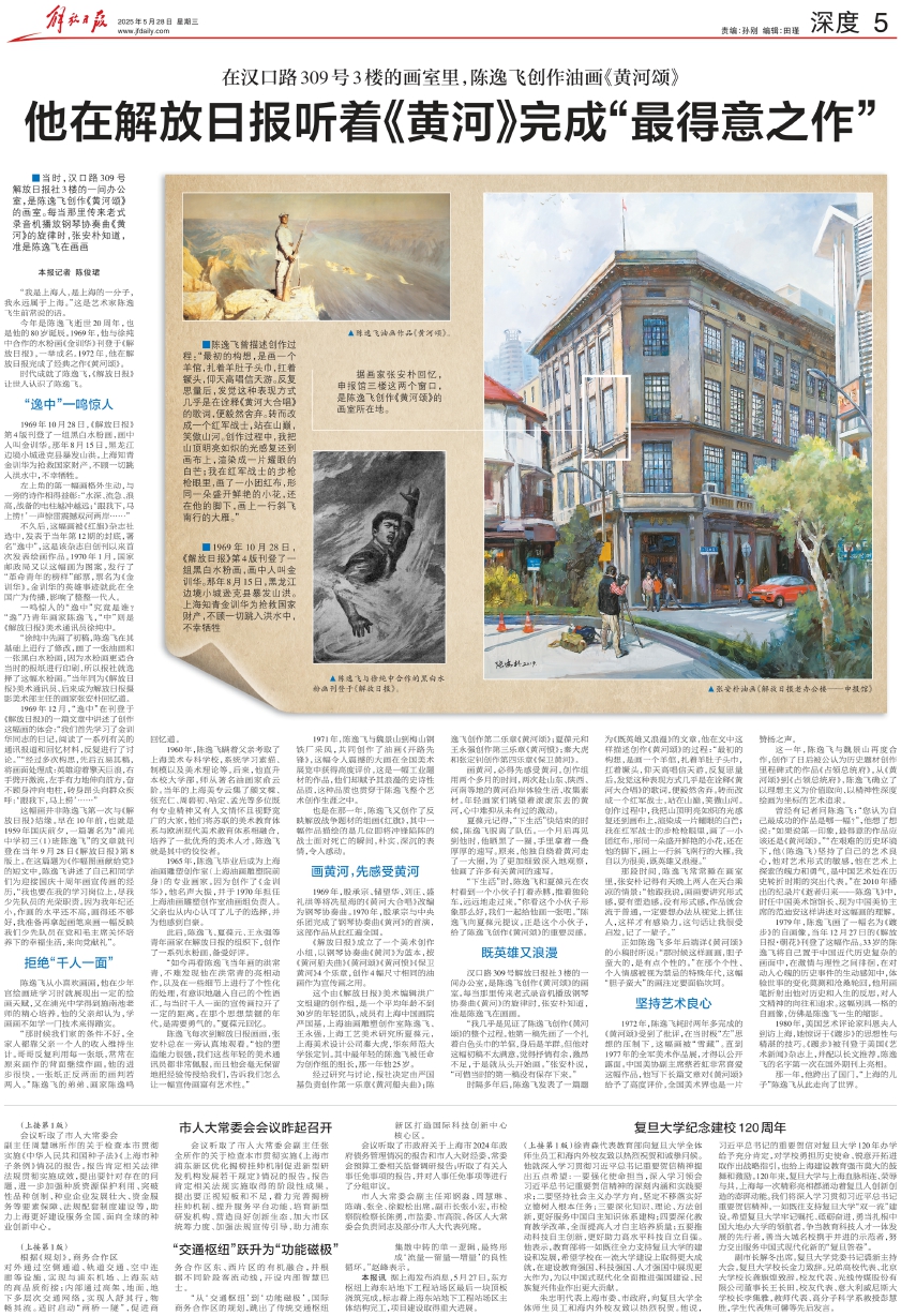 ■当时,汉口路309号解放日报社3楼的一间办公室,是陈逸飞创作《黄河颂》的画室。每当那里传来老式录音机播放钢琴协奏曲《黄河》的旋律时,张安朴知道,准是陈逸飞在画画