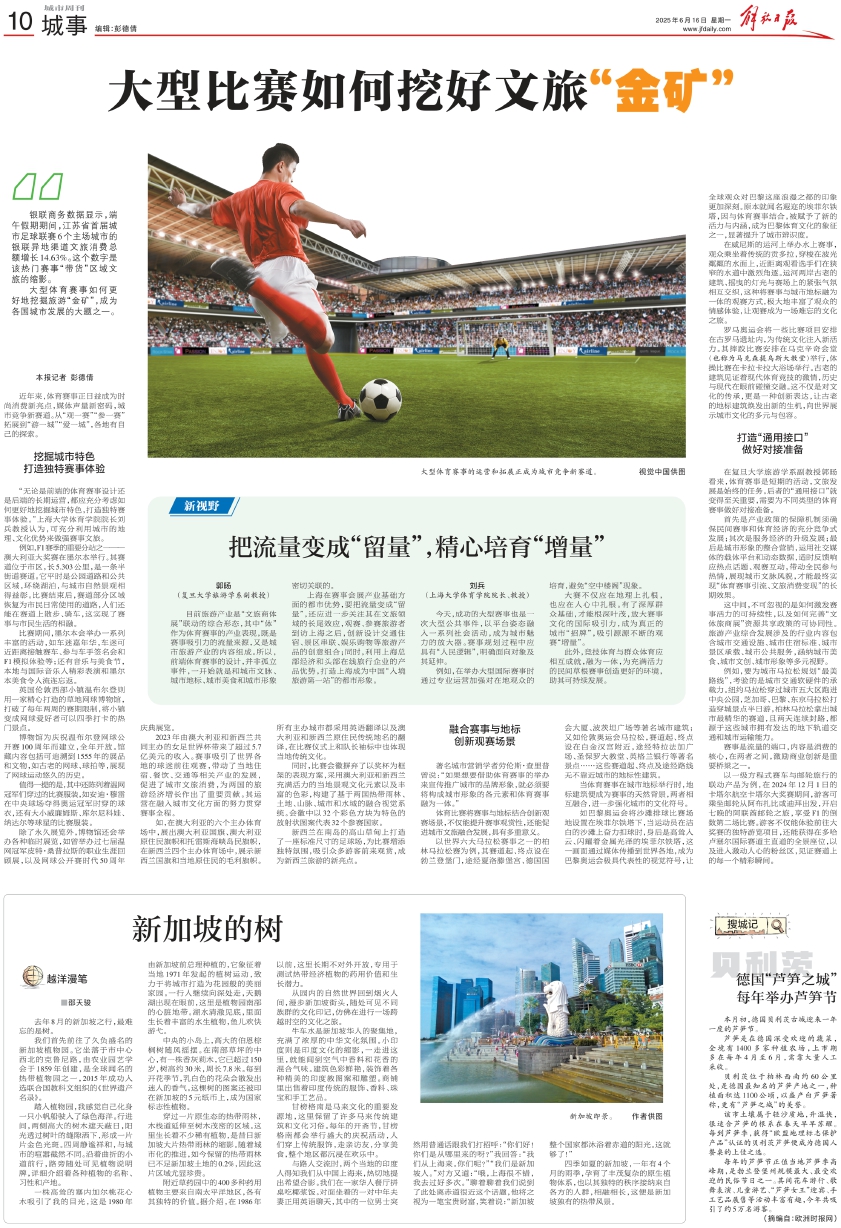 近年来,体育赛事正日益成为时尚消费新亮点,媒体声量新密码,城市竞争新赛道。从“观一赛”“参一赛”拓展到“游一城”“爱一城”,各地有自己的探索。