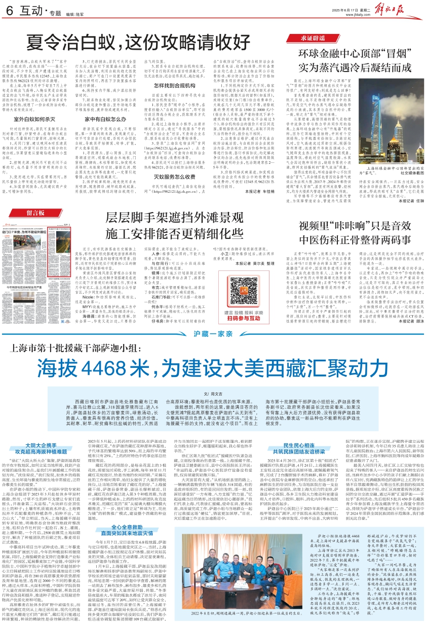 大灾面前有大爱。“从机场到县里的路上,一辆辆满载物资的车辆飞驰在318国道,有的是政府组织的、有的是民间自发的。那一刻,我深切感受到‘一方有难,八方支援’的力量。”忆起返藏当日的情形,沈佳梁依旧心潮澎湃,“我们代表上海、代表徐汇援藏,使命在肩,要高标准、高质量完成工作。萨迦小组与当地群众一起打过救援这场‘硬仗’,情谊更加深厚。”目前,灾后重建工作正在加速推进中。