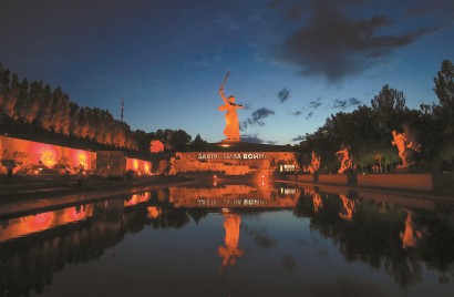 此行第一站,便是马马耶夫山岗。飞机降落伏尔加格勒,“斯大林格勒国际机场”的字样令人瞬间穿越时空。驶往市中心的公路上,马马耶夫山岗之巅,“祖国母亲在召唤”雕像早早映入眼帘。这尊高达85米、重8000吨的雕像将萨莫色雷斯胜利女神与苏联宣传画中的母亲形象融为一体,衣裙翻飞,利剑直指苍穹,仿佛正在召唤身后万千儿女继续奋勇向前。