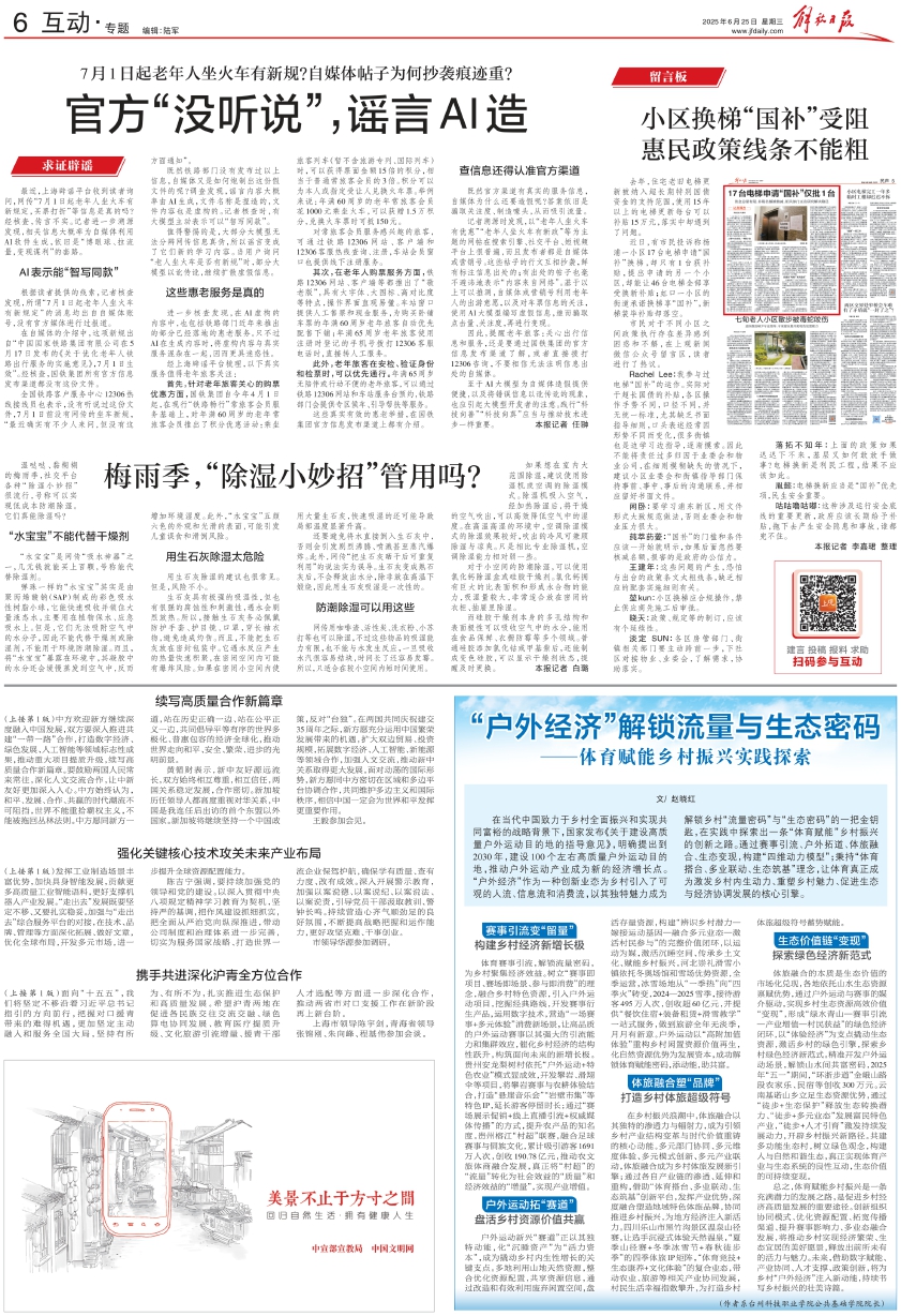 户外运动新兴“赛道”正以其独特动能,化“沉睡资产”为“活力资本”,成为撬动乡村内生性增长的关键支点。多地利用山地天然资源,整合优化资源配置,共享资源信息,通过改造和有效利用废弃闲置空间,盘活存量资源,构建“辨识乡村潜力—嫁接运动基因—融合多元业态—激活村民参与”的完整价值闭环,以运动为媒,激活沉睡空间、传承乡土文化、赋能乡村振兴。河北崇礼滑雪小镇依托冬奥场馆和雪场优势资源,全季运营,冰雪场地从“一季热”向“四季火”转变,2024—2025雪季,接待游客495万人次,创收超60亿元,并提供“餐饮住宿+装备租赁+滑雪教学”一站式服务,做到旅游全年无淡季,月月有新意。户外运动以“高附加值体验”重构乡村闲置资源价值再生,化自然资源优势为发展资本,成功解锁体育赋能密码,添动能,助共富。