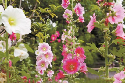 不过,十来米之外别家种的蜀葵已经开了。红色与粉色的花朵,艳丽而繁茂,有点像虞美人的繁复版。凑近看了,蜀葵的花似锦缎扎成一束,所谓花团锦簇。蜀葵最特别的是茎,一根直立向上,反像木本。花朵沿茎而上,亭亭玉立,形似一丈红——不过说是苏浙一带的叫法。