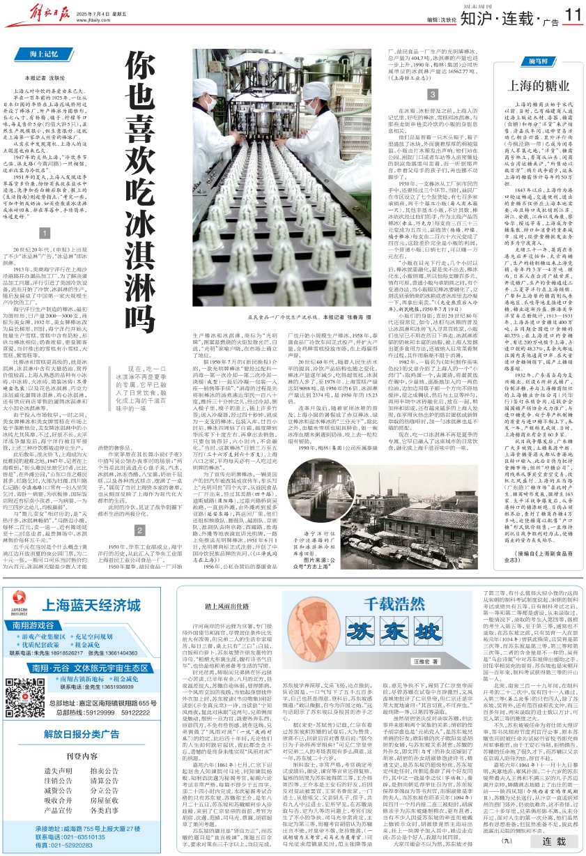小贩们的身影,直到20世纪80年代还很常见。如今,冰柜与冰箱的普及让冰淇淋和冰砖飞入寻常百姓家,小贩们也早已不用在烈日下奔走。冰淇淋浓郁的奶味和丰富的油脂,被上海人发掘出更多食用方法,还被纳入日常菜肴制作过程,其作用渐渐不限于消暑。
