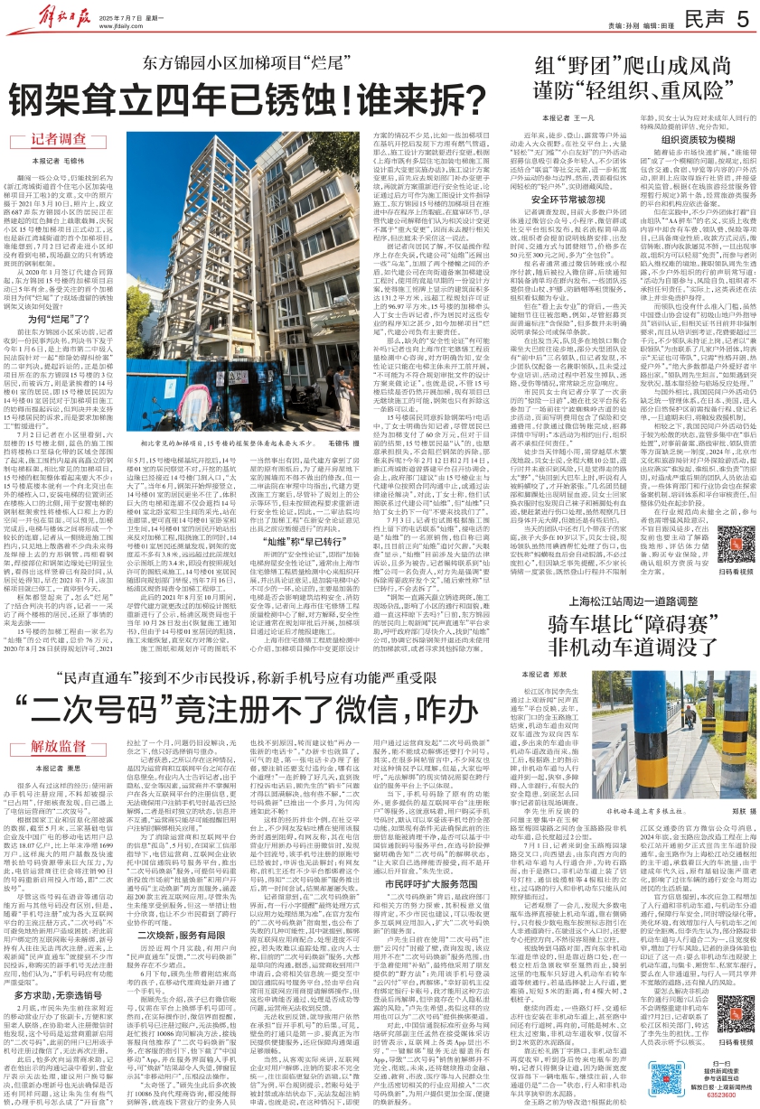 要怎么解决非机动车的通行问题?以后会不会调整重建非机动车道?7月2日,记者联系了松江区相关部门,转达了李先生的担忧。工作人员表示将予以核实。