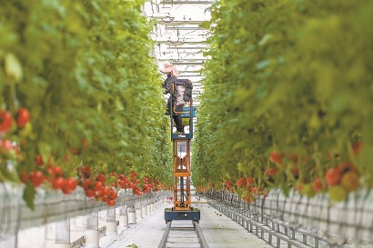 工人在崇明光明瑞华果园内采摘小番茄。沈嘉俊 摄