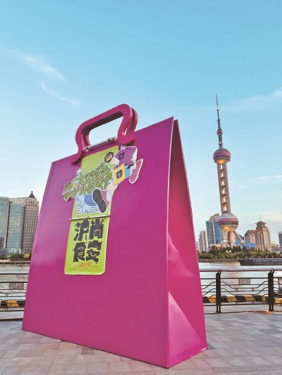 2025第五届外卖食品安全封签宣传推广活动期间,“沪尚食安”巨型外卖袋格外引人注目。 -