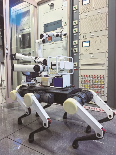 国网上海电力“天枢”自主巡检机器狗远程操作复归按钮。