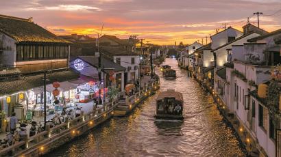 6月28日,苏州山塘街的晚霞映红天空,琴川书店就开在这里。 视觉中国