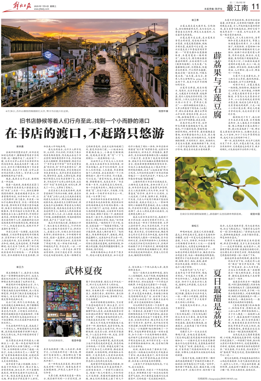 我在几家旧书店间行走,我看到了更多的流动。流动与坚持并不对立。流动本身也是一种为了坚持的坚持。文学山房的坚守,知止书店的淡然,十方书屋的倔强,琴川书店的随性,还有莲花书屋、寒杉书店,它们顺时而动,都在用自己的方式寻求生存和发展,也给步履匆匆的现代人提供一方栖息地。在书店的时光里,在城市的脉络和人生的轨迹以及我们不断变化的喜好之中,在城市的面貌于岁月中悄然改变、新的建筑拔地而起、旧的街巷逐渐翻新之时,那些旧书店就是城市的渡口,等着人们行舟至此,翻阅曾经的模样。