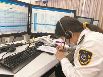 在此起彼伏的电话铃声中,上海市医疗急救中心调度指挥中心又迎来新的一天:这里的调度员交班大多在早7时至早8时,但入夏后持续高温,大家上下班时间变得“模糊”了,“会稍微多接几个电话,除了急救患者,医疗机构间转运和行动不便的市民出院回家也会在这个时间段大量拨入。”副班组长朱琳的嗓音沙哑,还不时咳嗽,但她坚持不请假,为忙碌的同事再分担些。