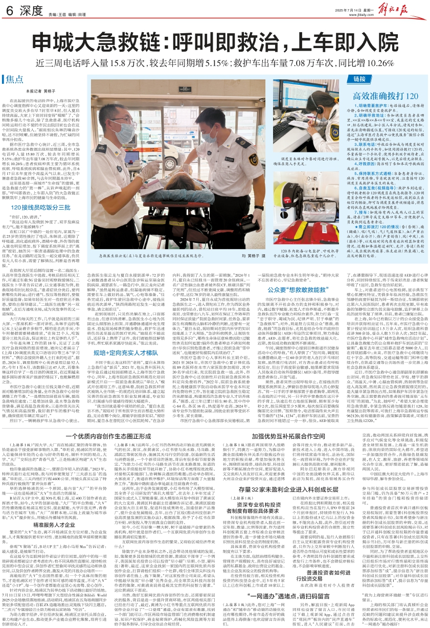 市医疗急救中心主任张志锋介绍,急救事业的发展离不开社会各方的支持和积极参与。对内,通过数字赋能、拓宽人才培养渠道,不断提升急救队伍的专业能力和综合素养,努力打造一支“忠于职守、竭诚为民、纪律严明、甘于奉献”的“急救铁军”;对外,则是努力实现公众“想救,敢救,能救”的急救目标。尤其是结合今年市政府自动体外除颤仪(AED)布设的实事项目,努力串起患者、AED、志愿者,将社会急救的效益最大化。近期,类似成功救治案例不断涌现。
