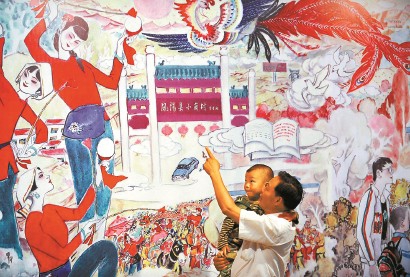 小岗村村民带着孙子参观村里的“大包干纪念馆”。 新华社发(资料照片) -