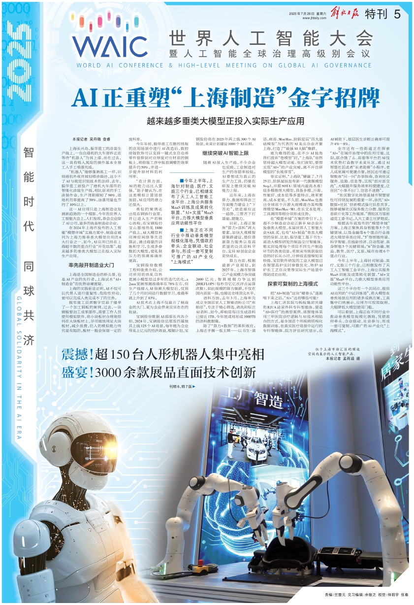 在2024年上海市发布的人工智能“模塑申城”实施方案中,制造业被列为上海力推垂类大模型应用的6大行业之一。如今,AI应用已经在上海超半数的重点行业“开花结果”,越来越多的垂类大模型正在投入实际生产应用。