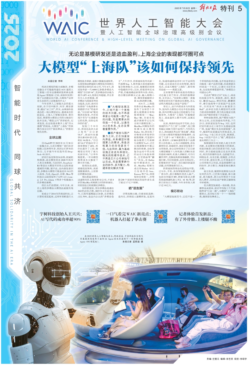 在2025世界人工智能大会上,阶跃星辰、千里科技和吉利汽车集团共同发布了面向Al Agent原生打造的下一代智能座舱Agent OS(预览版)。 本报记者 孟雨涵 摄
