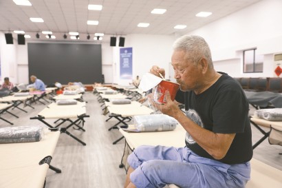 金山区泽达进修学院石化街道的安置点内秩序井然。本报记者 李茂君 摄