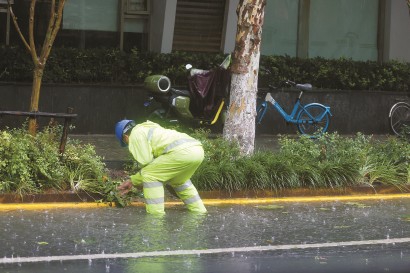 风雨中,上海3423人组成的287支绿化防汛应急队伍、5636人组成的347支道路保洁应急抢险队伍全部奔赴一线,开展隐患问题排查和应急抢险处置工作。