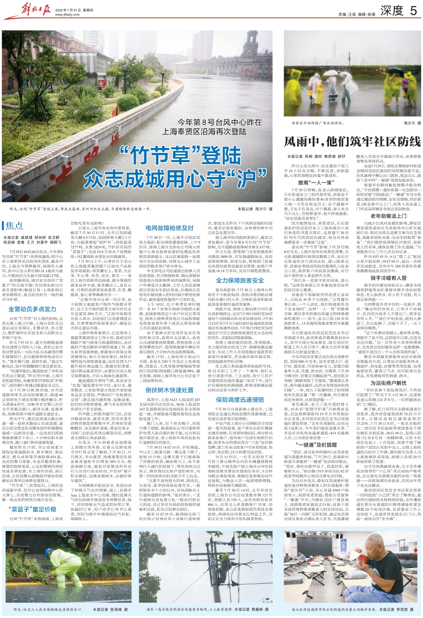 “竹节草”登陆 众志成城用心守“沪”