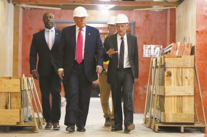 7月24日,美国总统特朗普和美联储主席鲍威尔视察美联储翻修项目。