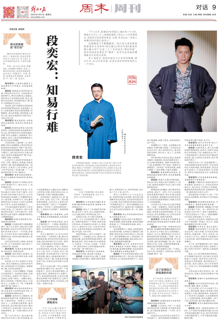 段奕宏:我2011年开始在《四世同堂》里演说书人,将近14年了,每年都演几场。