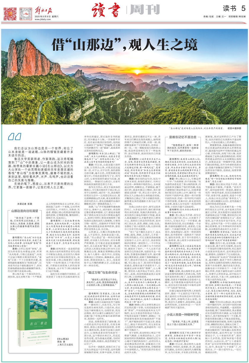 蒋韵:可以说,山是这篇小说的主角。以自然为主角,对我来说还是第一次。对于山、对于自然,我的感悟力很平庸,毫不出色,尽管我确实很爱它们。可我还是冒险写了它。我写山时,心里有很深的感动与沉浸,直到现在,一想起《在山那边》,还是有种身临其境的留恋挥之不去。
