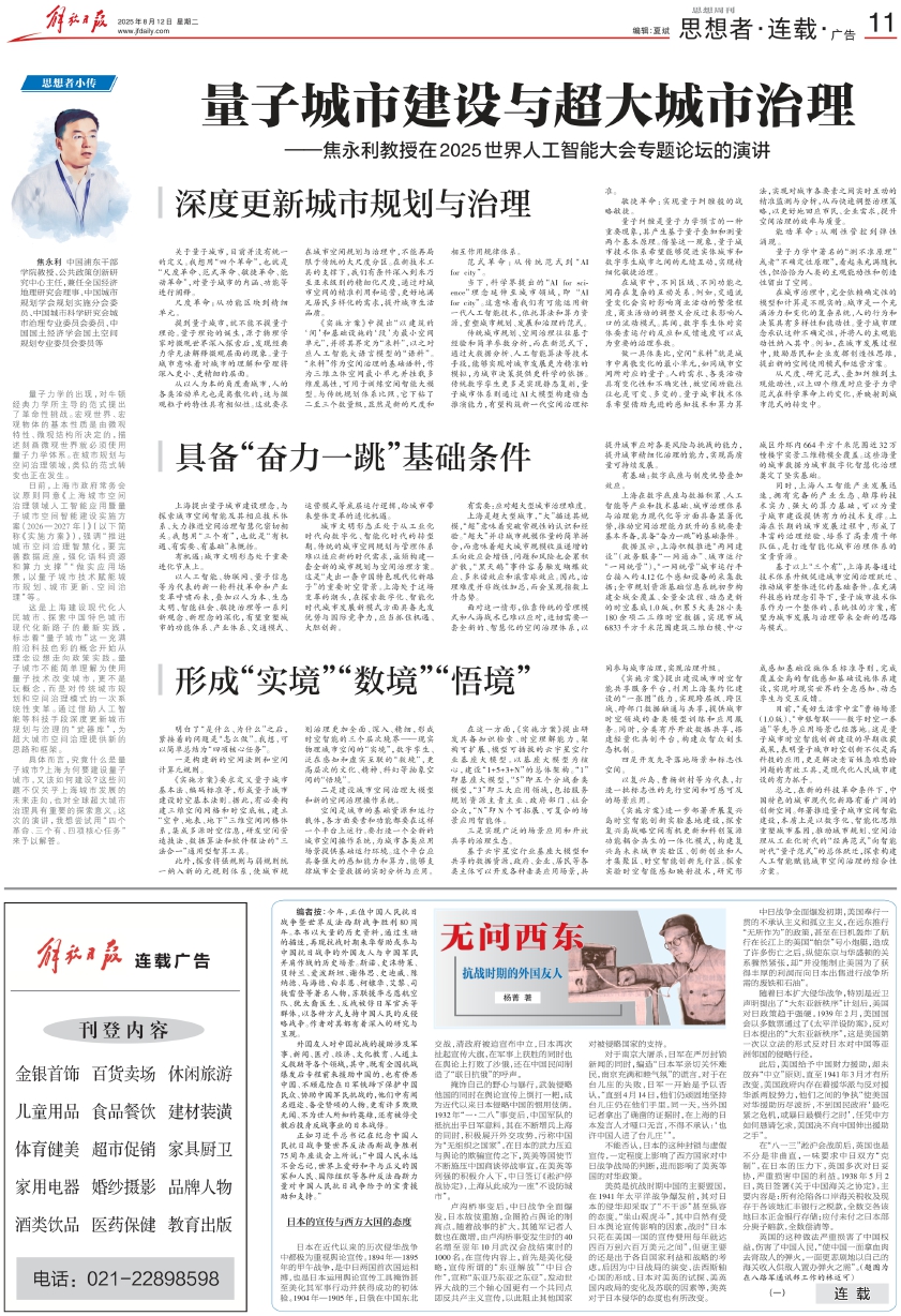 这是上海建设现代化人民城市、探索中国特色城市现代化新路子的最新实践,标志着“量子城市”这一充满前沿科技色彩的概念开始从理念设想走向政策实践。量子城市不能简单理解为使用量子技术改变城市,更不是玩概念,而是对传统城市规划和空间治理模式的一次系统性变革。通过借助人工智能等科技手段深度更新城市规划与治理的“武器库”,为超大城市空间治理提供新的思路和框架。