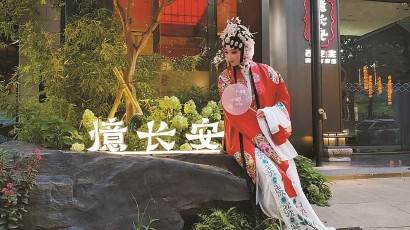 憶长安·西安宴开业初期,鲁丹青就定位要传递陕西美食和非遗文化。起初,店里只有秦腔表演。再后来,随着越来越多的客人提出需求,店里开始加入胡旋舞、华阴老腔等具有地方特色的表演,甚至还提供免费唐装汉服和妆造体验。