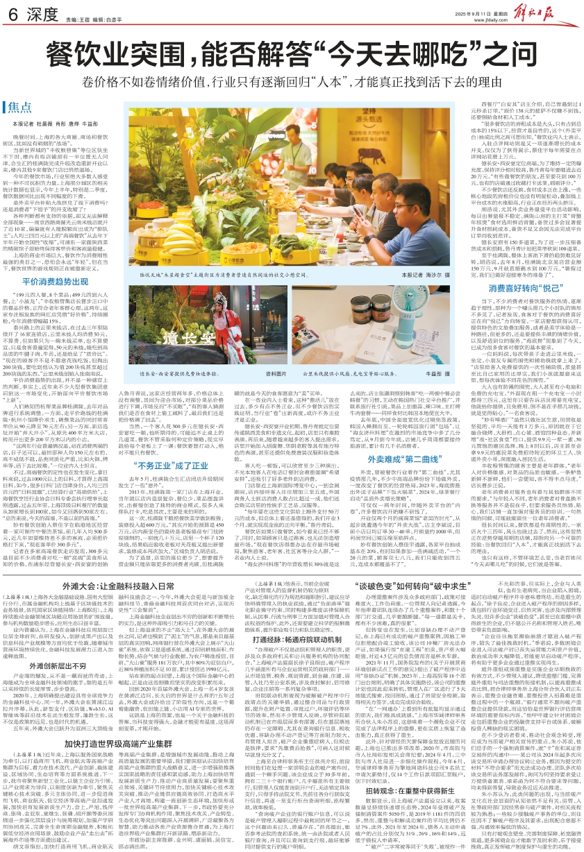 当下,不少消费者对餐饮服务的热情,逐渐趋于理性。那种为一个噱头排几个小时队的情形不多见了。记者发现,食客对于餐饮的消费喜好正在向“悦己”方向转变。一家店要想获得认可,提供特色的文旅叠加服务,或者是美学体验是一种路径,但更多的,还是要提供丰满的情绪价值,以及舒适到位的服务。“海底捞”现象到了今天,已成为很多食客对餐饮的基本要求。