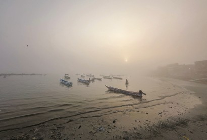 在塞内加尔首都达喀尔,渔民在雾中进行打渔准备。 新华社资料图片