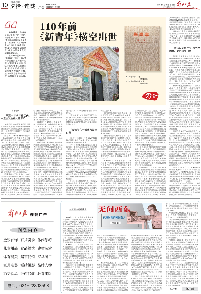 从1915年至1926年,《新青年》刊行11年,致力于宣传民主与科学思想,发起新文化运动,系统介绍和传播马克思主义,引领时代的新青年肩负救国复兴的使命,成为中国思想界走出传统、迈向现代化的标志。