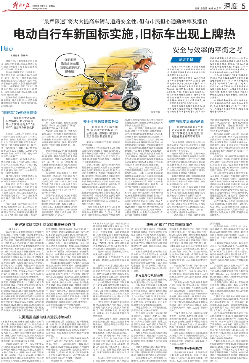 骑电动自行车通勤四年多,市民曹先生觉得电动自行车“灵活也很快捷”,他准备在近期换一辆车。“符合新国标要求的车辆肯定更安全,而且放宽了电池重量,续航能力应该有提升,能满足中长距离通勤需求。”