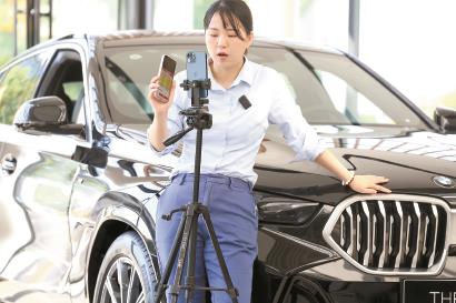 9月,闵行区吴中路上某4S店,一位销售员全身心投入在线直播。 本报记者 李茂君 摄