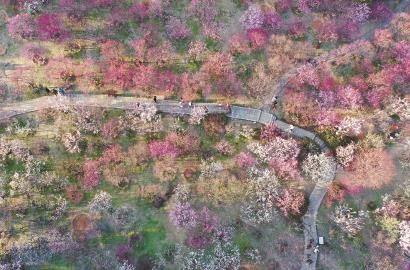 在江苏无锡,游人在梅园赏花游览。 视觉中国