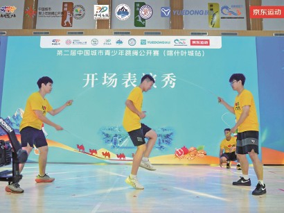 今年7月,“奔跑吧·少年”第二届中国城市青少年跳绳公开赛(喀什叶城站)在叶城县体育馆拉开帷幕。这是叶城县第一次举办国家级跳绳赛事,吸引了来自新疆、上海、北京、西安、杭州、成都、南宁、徐州、兰州等地的46支队伍500余名选手参赛。更重要的是,这场全国性青少年体育赛事融合体育竞技、文化交流与文旅体验,不仅串联起沪叶两地的深厚情谊,更成为传播中华文化、铸牢中华民族共同体意识的生动实践舞台。