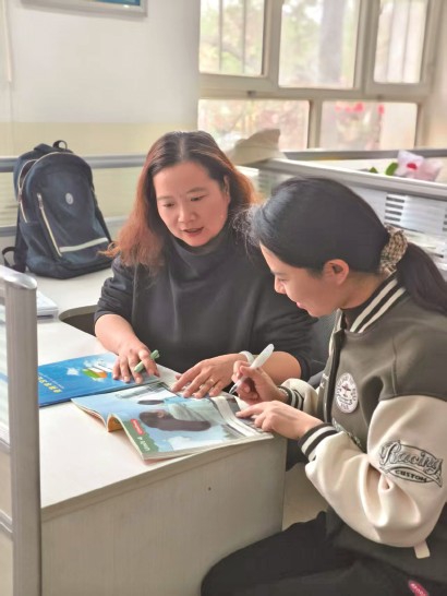 上海援疆教师戴敏结合学生特点进行教学辅导。 -