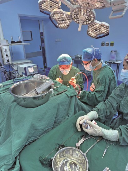 上海援疆医生朱斌在给病人动手术。 -