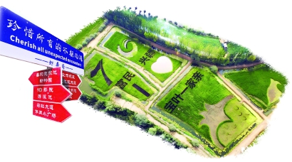 夏合甫乡虾荷府农家乐的巨幅稻田画。 -