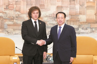 龚正会见格鲁吉亚总理科巴希泽。本报记者 张春海 摄