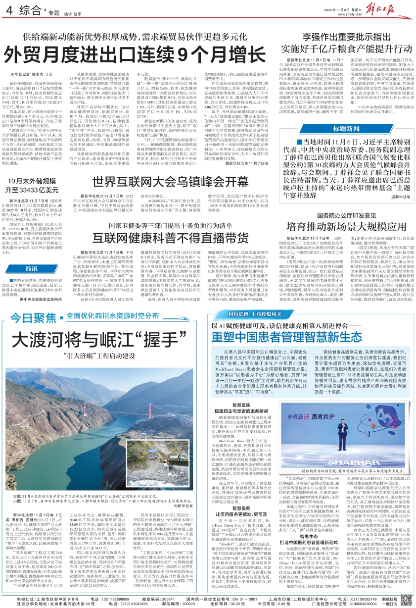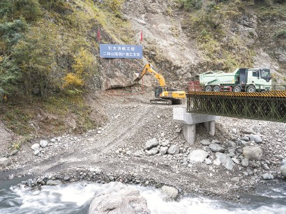 小图:11月7日,在四川省雅安市天全县,工程机械车辆在“引大济岷”工程二郎山隧洞2#施工支洞现场作业。 均新华社发