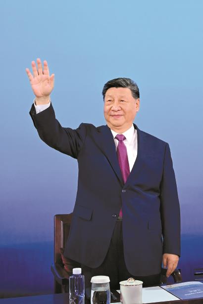 左图:11月9日晚,中共中央总书记、国家主席、中央军委主席习近平在广东省广州市出席中华人民共和国第十五届运动会开幕式并宣布运动会开幕。这是习近平在主席台上向大家挥手致意。 新华社记者 燕雁 摄 -